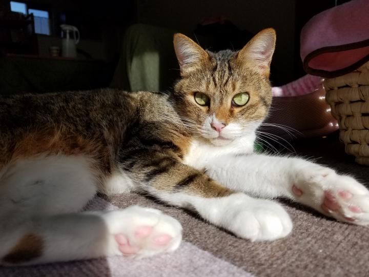 猫ハウスは、中の生地が茶色と白のチェックなので、その白がサクちゃんの白に見えたのかもしれません。