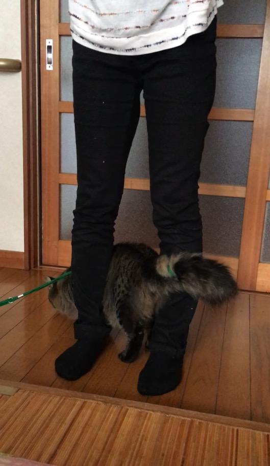 二週間ぶりのママンに、脚の間に入り込んで猛アピール♪