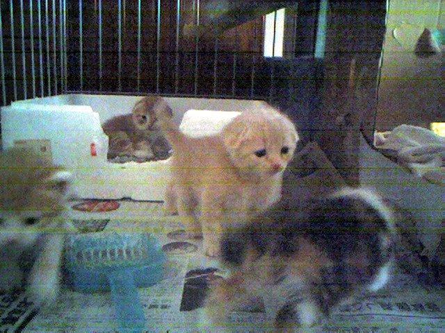 子猫、ちなみに折れ耳3匹と立ち耳2匹です。