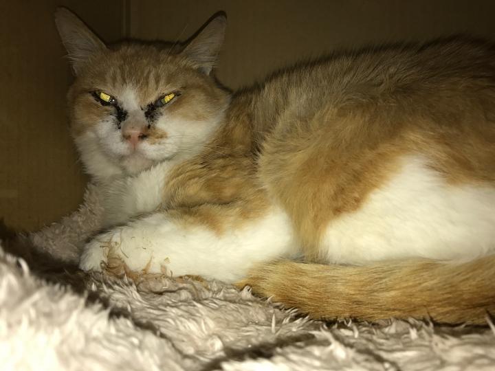一か月くらい前かな、長い間、食べ物にありつけなくて、寒さで風邪もこじらせて、鼻水はポタポタ垂れるし、目はショボショボして見えづらいし、疲れ果てて、ある家のお庭にたどりついたの。