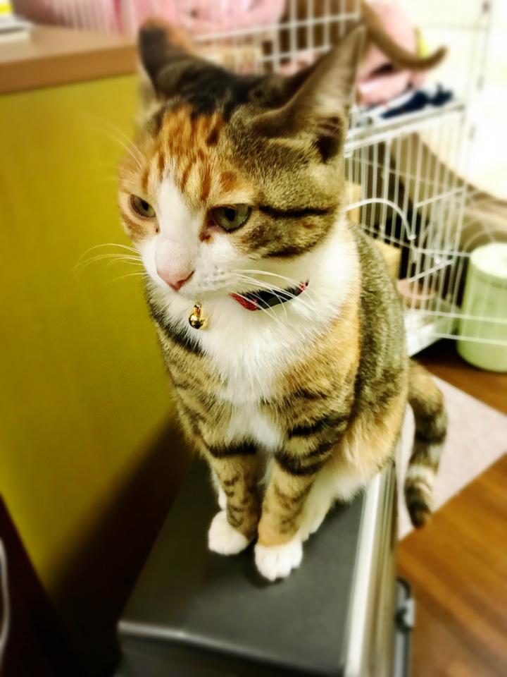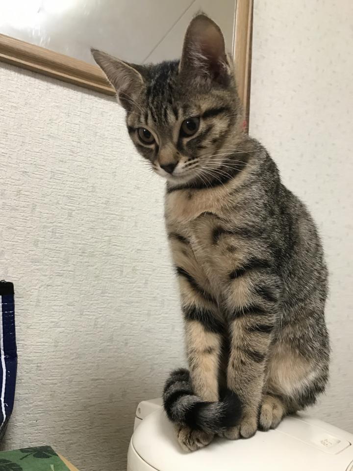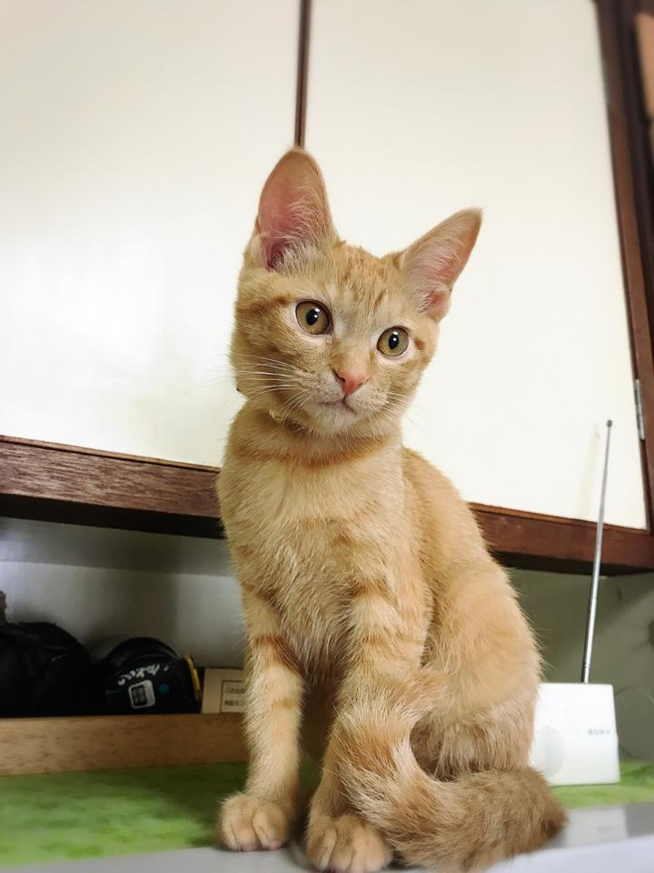 むぎちゃんは、冷蔵庫の上です