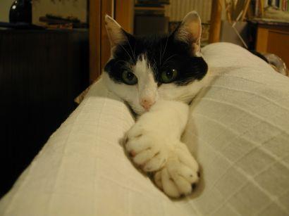 我が家のニャンズの中で、普段のしぐさが一番可愛いのが、シロです。幼顔だし、目が大きい。しかも、甘えん坊でお返事もできます。