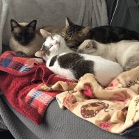 自宅で猫4匹と暮らしています。 仕事は動物病院で看護師をしているため そこで地域の方により保護されたものの飼い主さんに巡りあえず困っている猫さんに 少しでもチャンスをと思っています