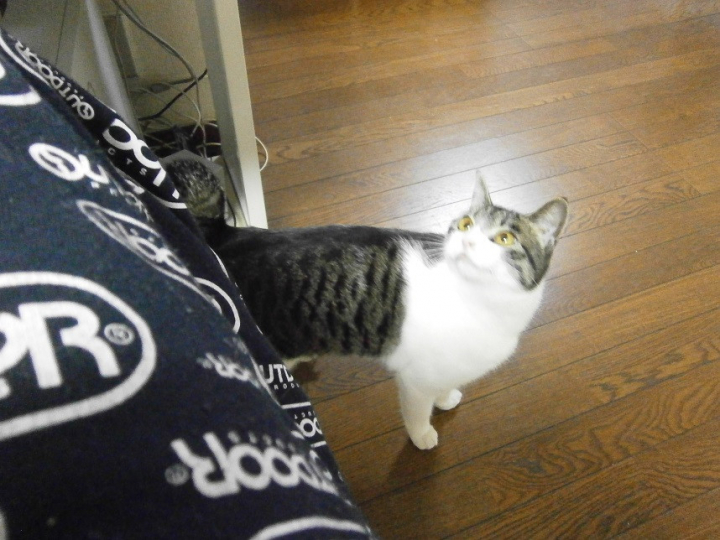 今夜もしおみちゃんの粘りに負けて 羽根じゃらしで遊びました^^