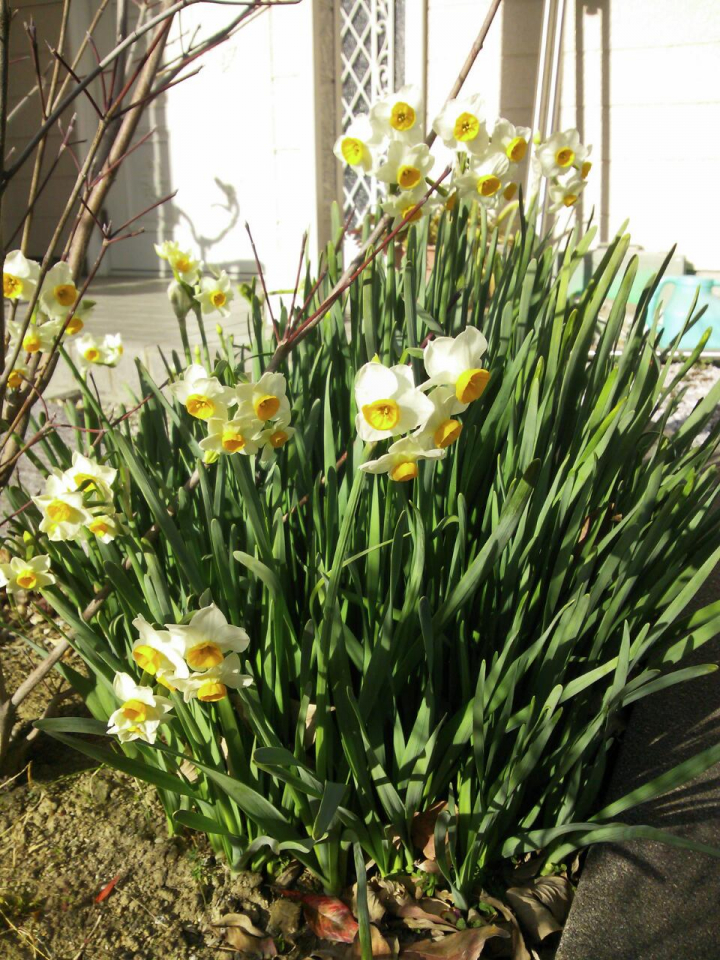 庭ではスイセンが咲き始め、春の訪れを感じさせています。