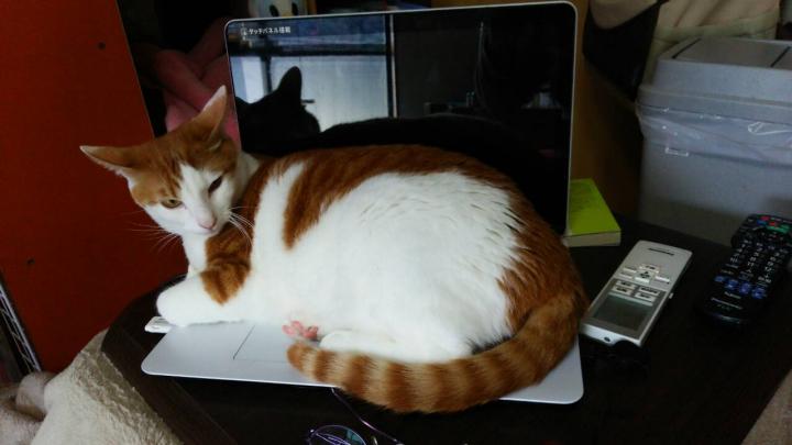 体に巻き付き、呼んだときはシッポの先だけ曲げて返事をします。