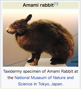 Wikipedia英語版より拝借、「Amami rabittアマミノクロウサギ」(東京・国立科学博物館所有の剥製)