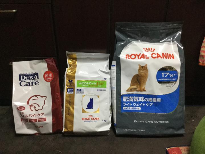 トロちゃんは維持食でロイカナのph2(4キロ)とドクターズケアのストルバイト(1.6キロ)。