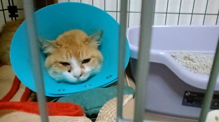 おにいさんが言うには、ノラちゃんは避妊手術を受けたんだよ、しばらくつらいけど、我慢してね、だって。