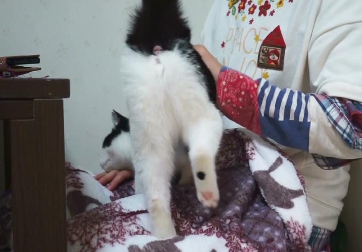 保護猫の食事の前には、まず声を掛けて。