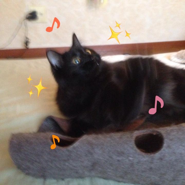 キャットタワーに付けてあるオモチャと1人遊びをしてたら、更にテンションが上がり、遊んでぇ〜〜と....
