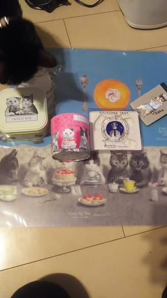 ランチマットと、シリコン型、パスケース、スイーツボックス、ティータイムセットです。
