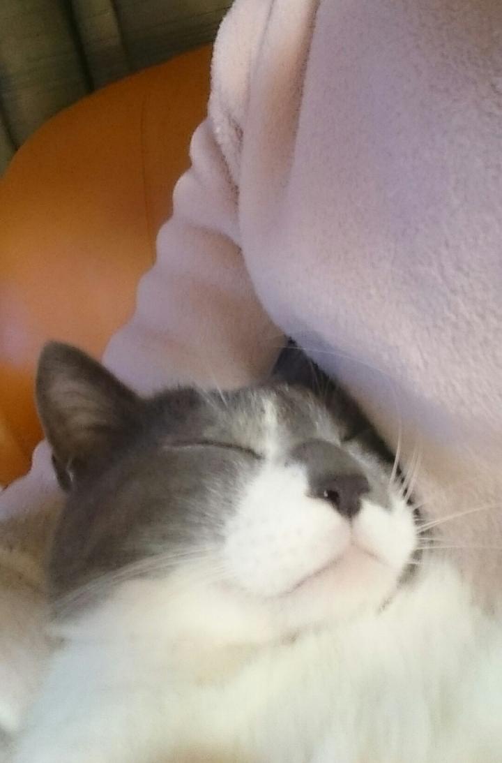 普段はあんまり寄り添ったりしないマリー。わたしがやっと落ち着いて座ったら、びたっと横で寝てくれました(^ー^)疲れを癒そうとしてくれてるような気がして、幸せな気持ちになりました。