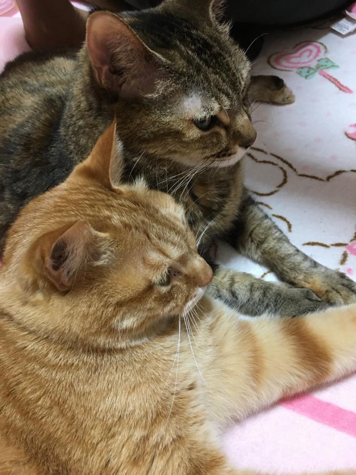 でもデビィはまだ若いので、走り回りたい、じゃれ合いたい年頃。二階の部屋を全部開けていると探検したり走り回っています。アンアンは18歳のおばあちゃんで太っているので、ノソノソ歩いています。デビィはチョッカイかけるけれど、アンアンに素早くペシッとされます。マイペースを崩しません。