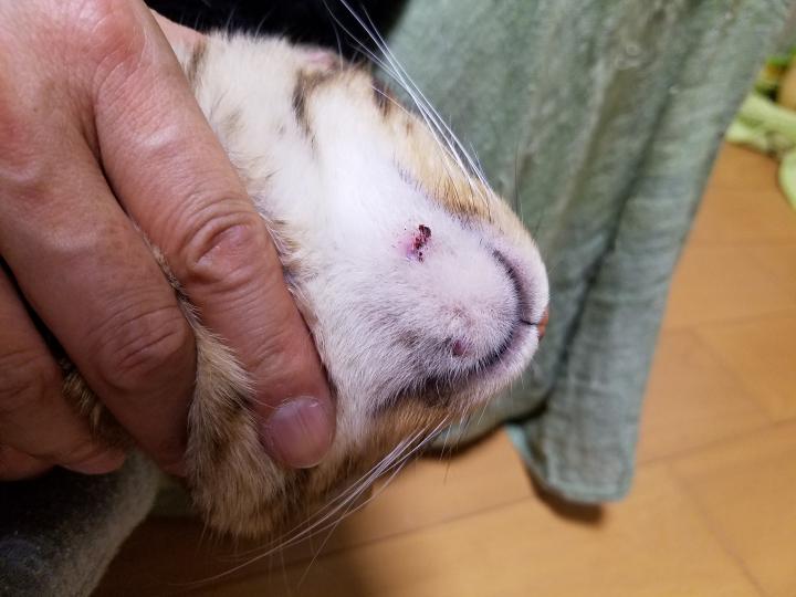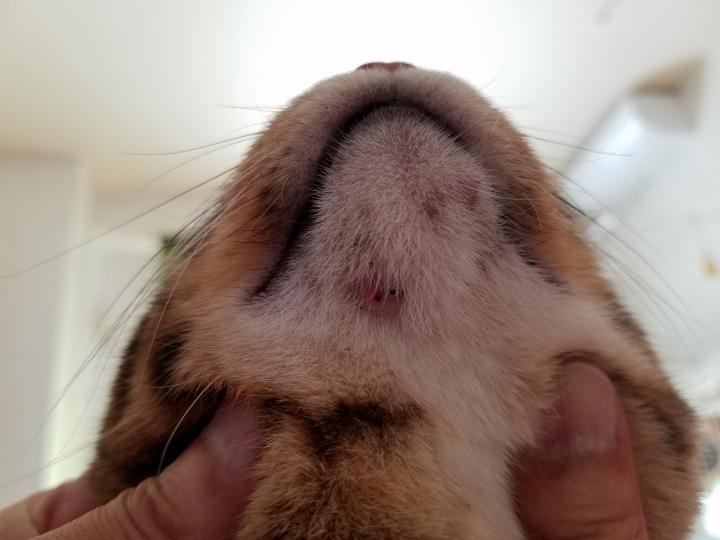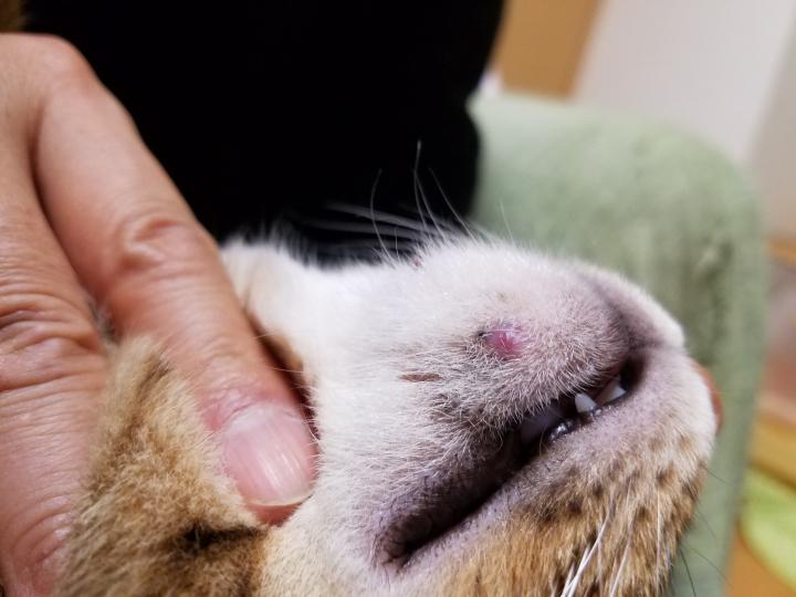 ニコちゃんの傷に一番近かったのは『座瘡(ざそう)』、いわゆる猫ニキビ。