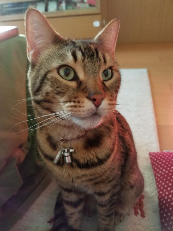 ベンガルはがっちり体型のはずなんですが、ニコちゃんは元々小さいうえに体重も増えない子です。