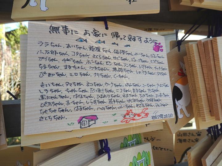 猫のお写真を貼っている絵馬の右隣に2つ納めてきたよ
