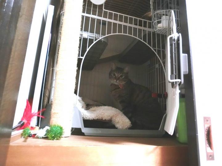 押入れのほぼ全て占めていた漫画を少しばかり処分し、ケージを中へ。