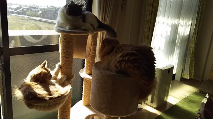 我が家は南向きにキャットタワー置いてるので必然的に⬆に集合😼😼😼全部で10キロまでって書いてあった気がするが、、、😼😼😼で12キロくらいあるけど大丈夫かな?(笑)