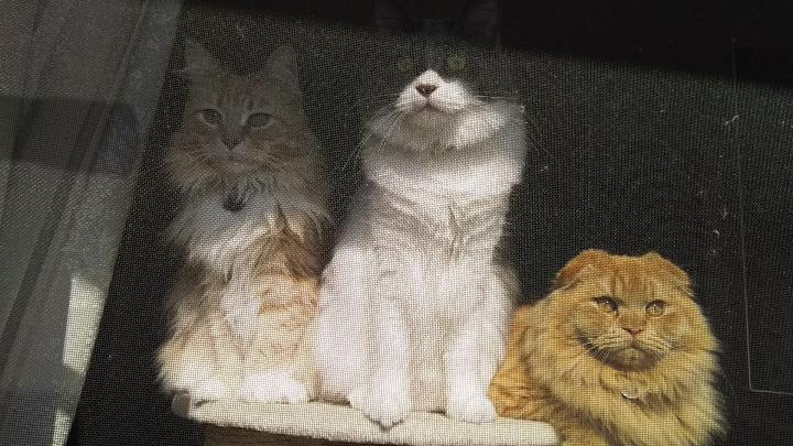 ももちゃん、外見る顔も相変わらずお美しい💖レオン、興味津々な顔だね🍀