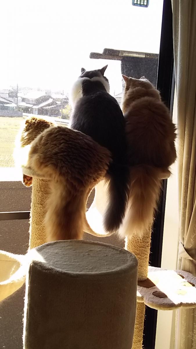 尻尾が3本並ぶ姿はほんとほっこりします😊