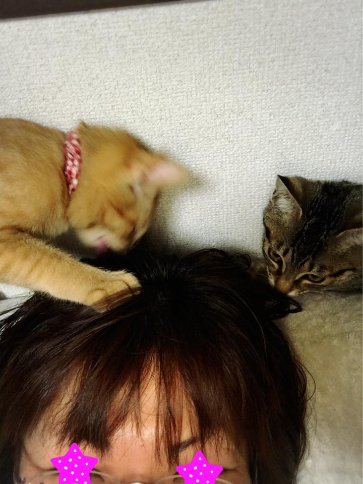 むぎちゃん そばちゃんは、お風呂あがりの私の頭に