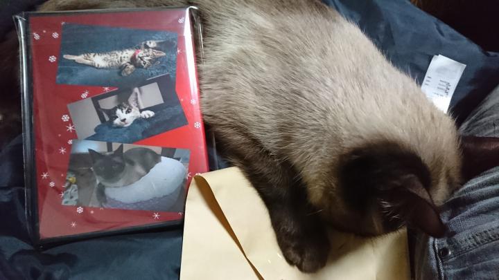 大福は何故か外の茶色の封筒がお気に召したようで延々とカミカミガチャを繰り返してました。