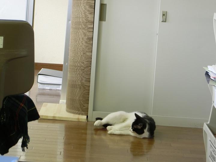 午前中はストーブ前のベッドが暖か過ぎたのか、ちょっと離れてゴロゴロ。