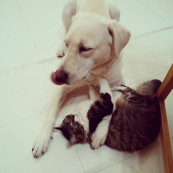 先代犬もラブも普段から落ち着きないので、よくわかりませんでした。笑