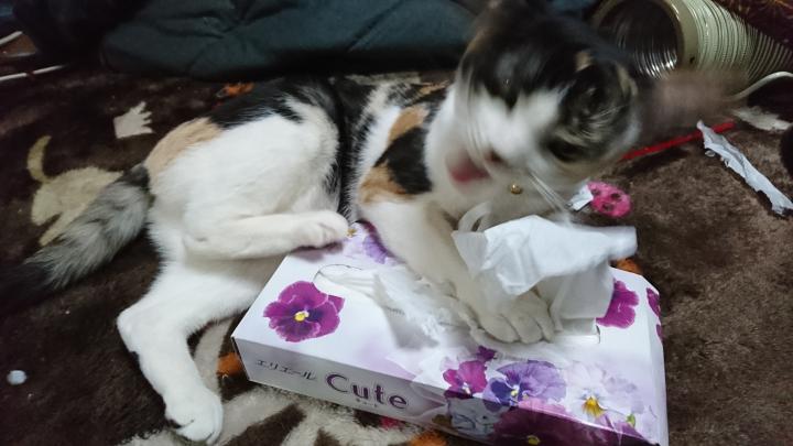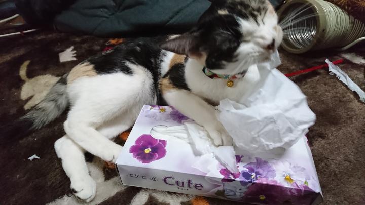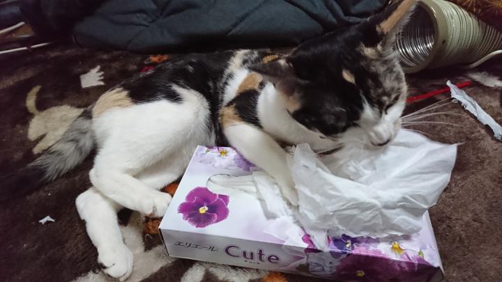 昨日の話ですが、ティッシュを取ろうとしたら視線の先には…。