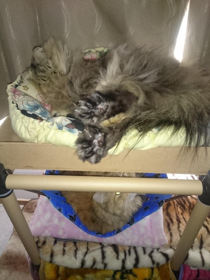 起きるとひめちゃんとごん太君がタワーで爆睡のお付き合い。