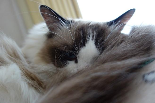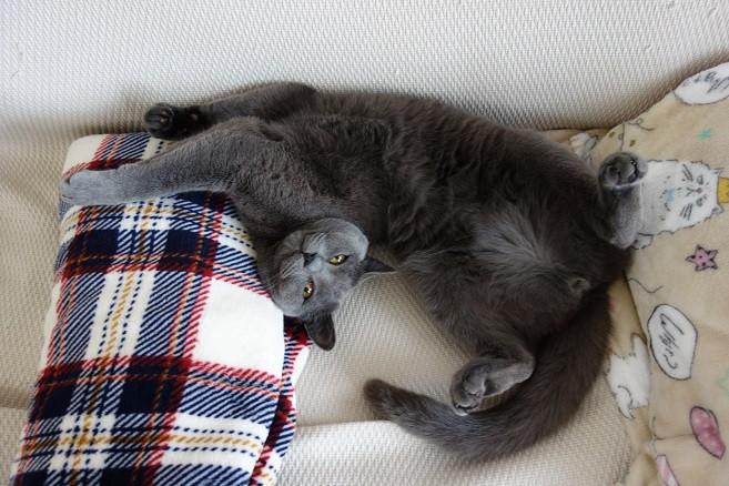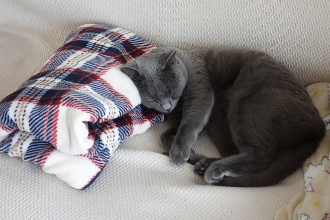 ひざ掛けを枕代わりに