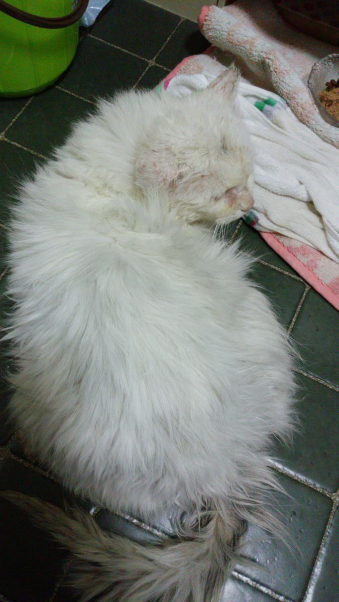 散歩してるの?と思ったくらい真っ白の長毛でした。たまに見る外猫とは明らかに違う雰囲気、、、