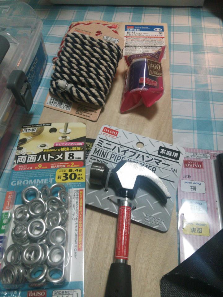 100円ショップで旦那様が購入した物↑これ+100円ショップでデカイデニム生地とチェックの生地を購入~~♪