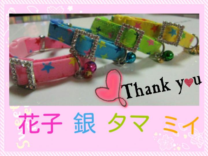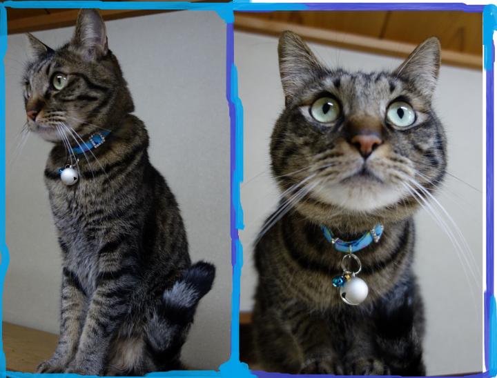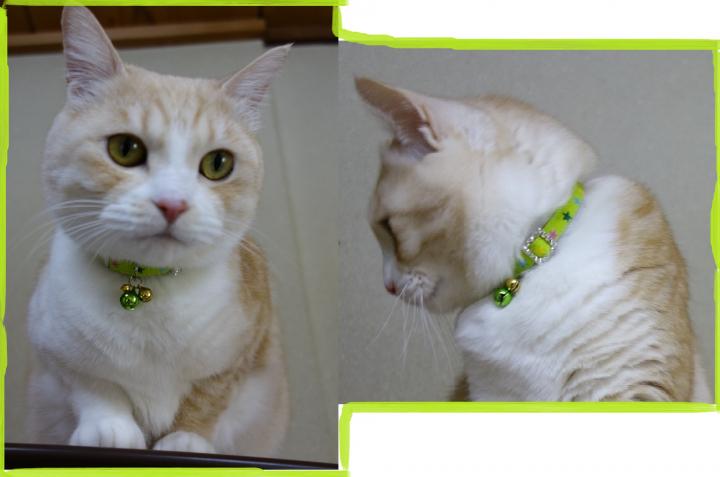 目の黄色と、お鼻のピンクに合わせてピンクの鈴をつけ足しました♬