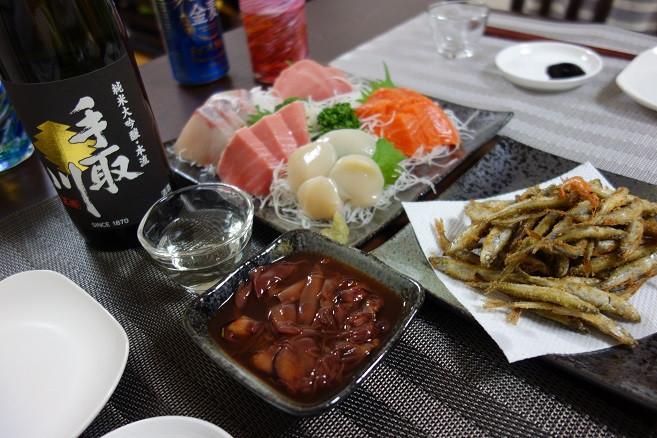 主人の出張のお土産の日本酒、ほたるいか・・・・ect