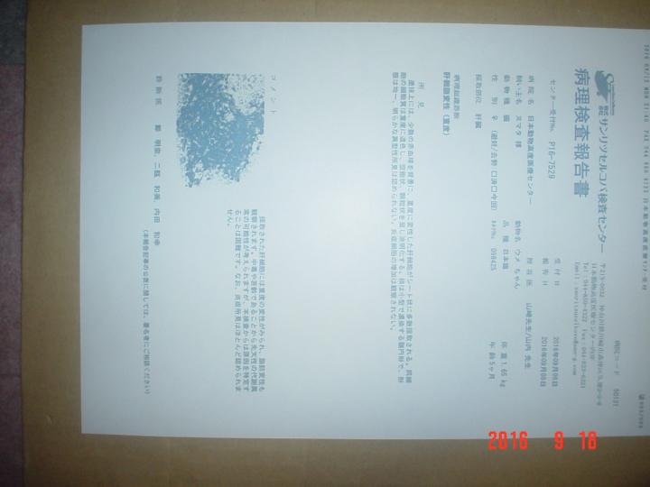 まだ小さい体なので開腹手術は無理で針で肝臓の一部を取り検査しましたが