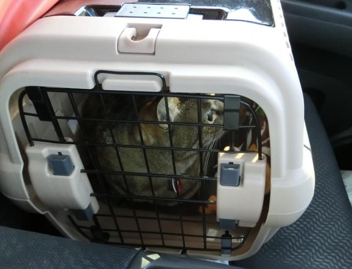 キャリーも病院も(お父さん先生でなければ)問題ないべーさんは、呑気に外を眺めます。