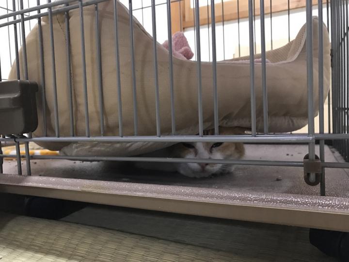 こんな風に、ベッド下にもぐりこんでたらね、新しい猫ハウスも導入してくれたのよ。