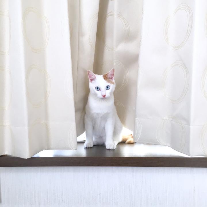 「茶白で青い目の猫」