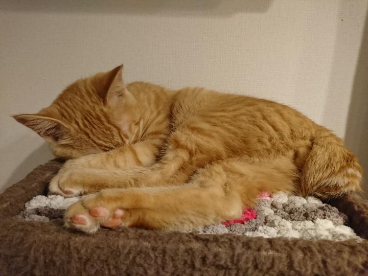 トイレして、私の膝の上で丸まって寝はじめたので、病院行った方が良いかな?日曜の午後だから、ちょっと遠いとこ(車で1時間弱)しか空いてないけど…と旦那と相談していたら