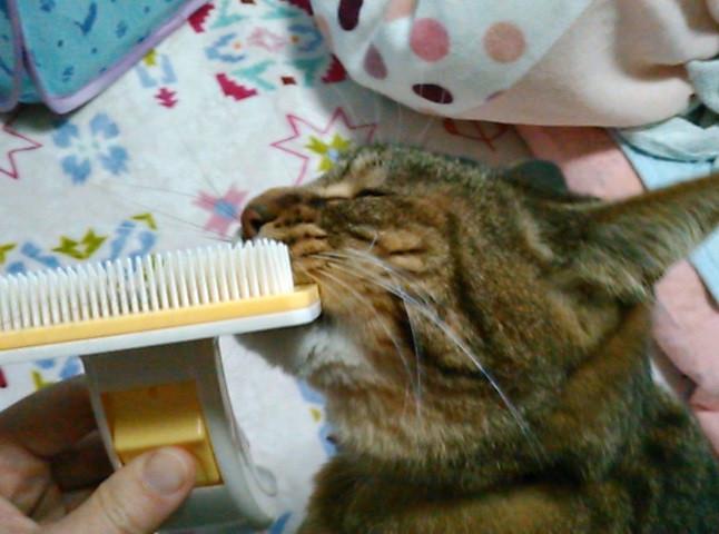 ブラッシング嫌いなべーさんは、人用のやわらかブラシがメインで皮膚マッサージと、