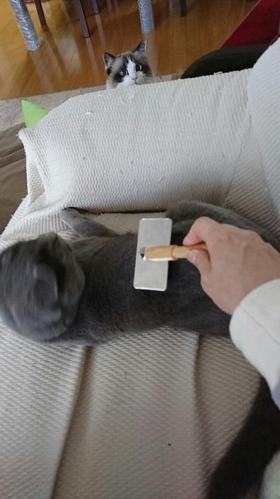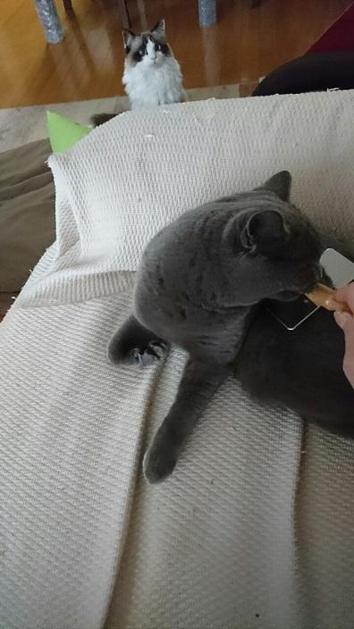 ヴァレが爪切りの時、無理矢理抱っこした時に騒いでいるとどこからともなくケイトさんがやって来て、ヴァレの耳をスンスンしたりしてます。