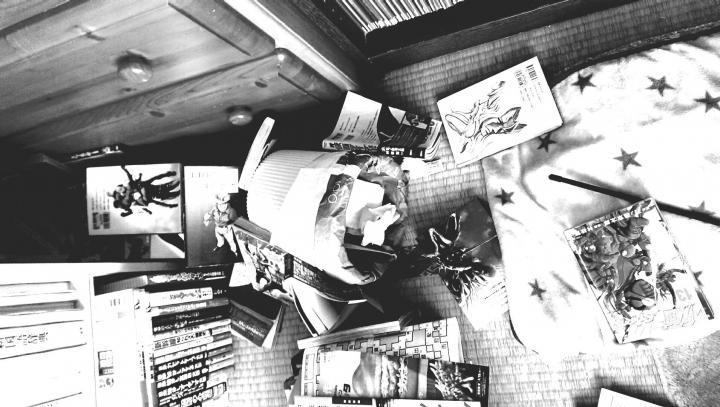 ☆旦那の部屋の本棚から本やDVDを落として、ゴミ箱をひっくり返す。