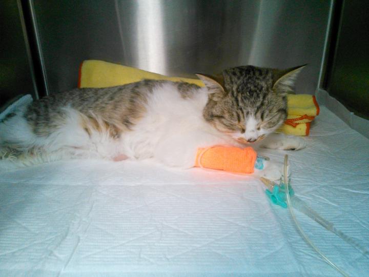 お腹も撫でてとお腹をみせました… 土曜日の夕方に処置をと病院を後に