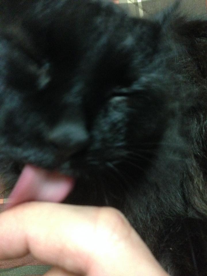ねこバカ主の手を舐めてる