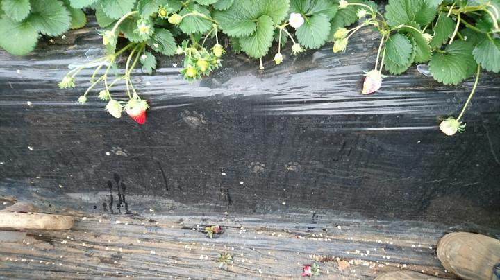 茶太郎:はい、現場の茶太郎です‼見てください、あちこちに苺のへただけ落ちてますにゃ‼