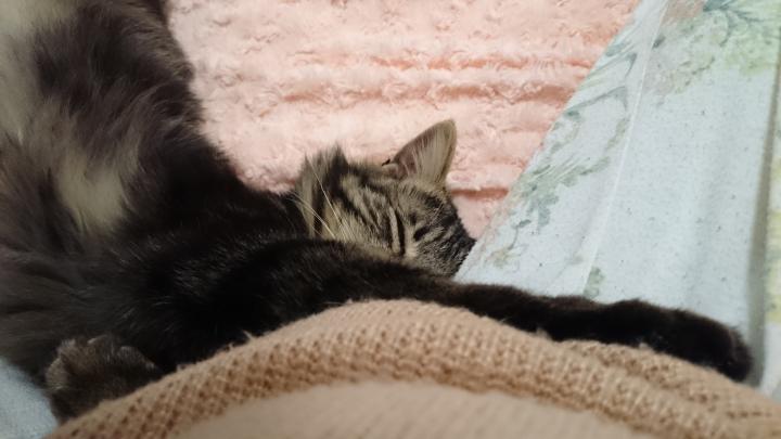 起こしてしまうと気の毒なので、もふもふな腹毛に顔を埋めたい気持ちを抑えながら