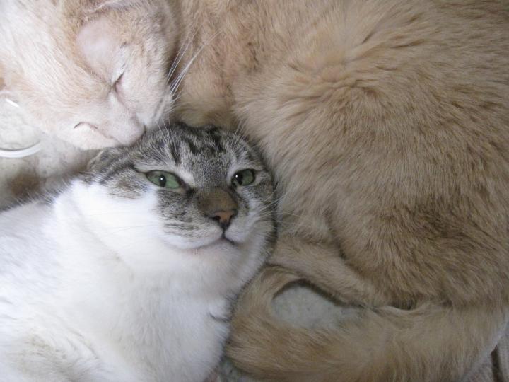 猫には猫好きが分かるらしくて、茶々。はママンにもまめおさんにもスリスリ。