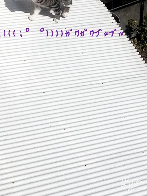 老朽化した猫庭の波板屋根、そこにワタシが降りたら間違いなく抜ける